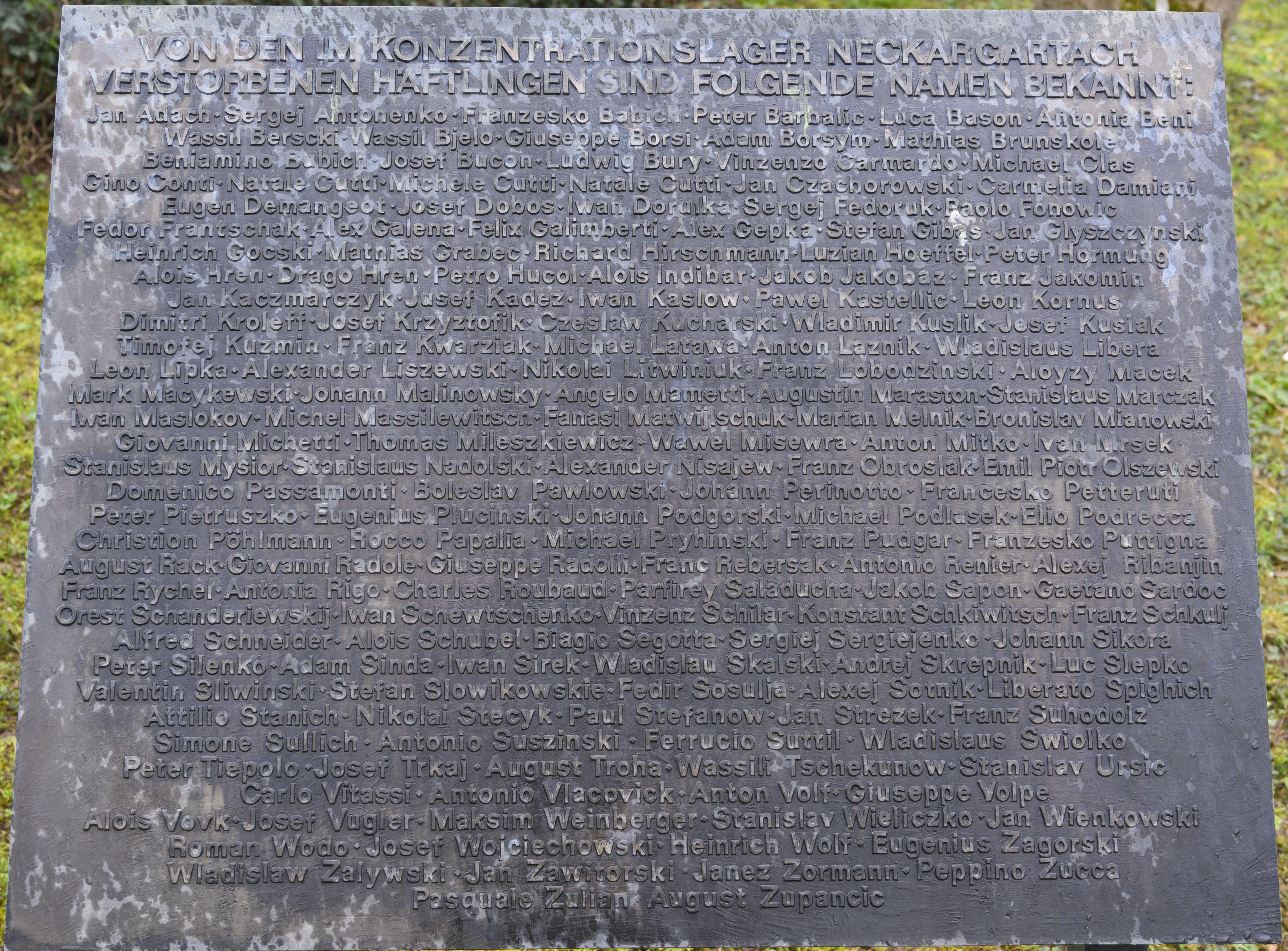 Die genaue Zahl und die Namen aller Toten des KZs Neckargartach sind nicht bekannt. Standesamtlich eingetragen sind 191 Todesfälle, von denen 164 nachweislich auf dem KZ-Friedhof begraben wurden. Doch die Gesamtzahl der Toten war mit Sicherheit wesentlich höher.